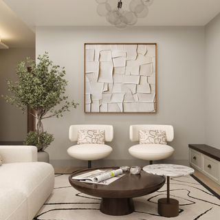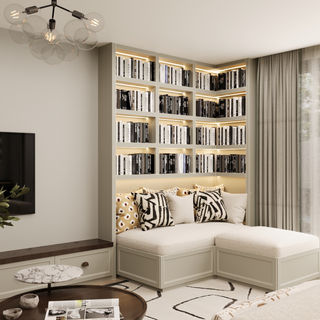 "Bağlıca’daki yeni villa projemizde; beyaz ve bej tonların ferahlığını, teddy kumaşın sıcak dokusuyla buluşturduk. Aydınlık bir salon kurgusunu, dingin bir kitap köşesiyle tamamlayarak modern ve huzurlu bir yaşam alanı tasarladık."